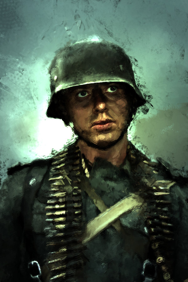 tan atraido por la expresion de los ojos de su hijo que los suyos propios se arrasaron de lagrimas. Le agradecio al joven soldado y ofrecio pagarle por el cuadro.