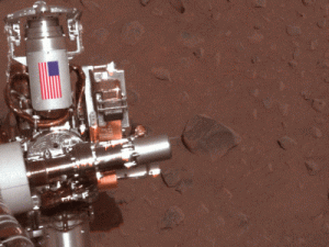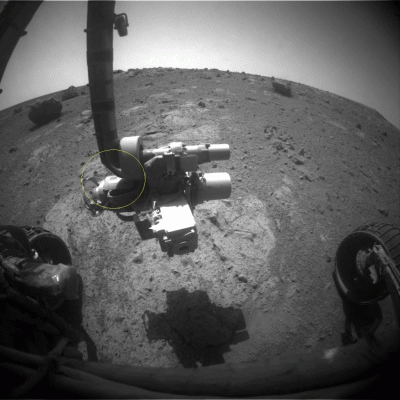 Estas dos imagenes , supuestamente reales sin retocar nos evidencian varias cosas , no aparece el cielo , en las banderas aparece un rojo intenso fuera de lugar , cromados sin una mota de polvo y sera porque en Marte no hay polvo en suspension o al paso de Mars Rover y ventiscas de cierta importancia , si observamos la primera foto , casualmente en blanco y negro aparece el cielo Marciano , polvo y desgaste en las ruedas y brazo robótico ,volvemos a observar las fotos a color y percibimos brillos extraordinariamente fotoshop en las partes metálicas ,la atmósfera Marciana llena de partículas en suspension no creemos que los rayos del Sol lleguen con esa intensa nitidez y reflectancia que mas parece anuncio de dentífrico que un brazo robótico alojado en Marte , planeta supuestamente inhóspito , polvoriento y lleno de relieves donde el desgaste parece obvio como muestran las ruedas de la primera imagen.