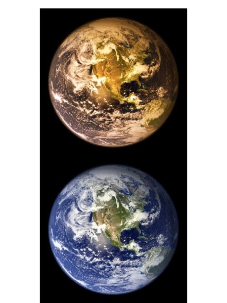 Abajo: En lugar de nuestro hermoso y bello planeta azul. (Como realmente somos)