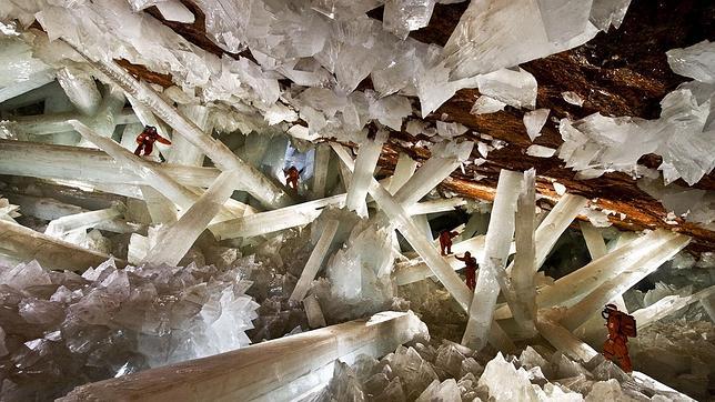 La cueva de los cristales gigantes es uno de los lugares más fascinantes del planeta. Ubicada a unos 300 metros de profundidad en la mina de Naica, en el estado mexicano de Chihuahua, esconde un paisaje onírico de grandes bloques de selenita pura que conforman los cristales más gigantescos del mundo. Esta burbuja geológica brilla como la Luna, pero su imagen de cuento de hadas o de mundo de ciencia ficción contrasta con las extremas condiciones que encierra: más de 50 grados de temperatura y un 98% de humedad que hacen imposible pasar más de unos minutos en su interior sin acabar deshidratado. Un grupo de investigadores españoles se ha adentrado en este infierno para conocer sus orígenes. La investigación, que aparece publicada en el último número de la revista Proceedings de la Academia Nacional de Ciencias, demuestra que la belleza más impresionante se forma con el tiempo. El estudio concluye que los cristales crecieron muy lentamente, en torno al espesor de un cabello humano por siglo, por lo que los científicos estiman que pueden tener centenares de miles de años, incluso un millón. Para obtener estos resultados, el equipo, junto a otro laboratorio japonés, diseñó un microscopio especial que mide velocidades bajísimas, imposibles de calcular de otro modo.