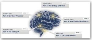 El Institute of Noetic Scienceha creado un mapa sobre las áreas del cerebro que, hasta ahora, la neurología ha relacionado con diversos aspectos de la espiritualidad. Tronco cerebral y misticismo, o lóbulo temporal y religiosidad, son algunas de las relaciones establecidas por la neurología. El mapa detalla las investigaciones que se relacionan con cada una de las zonas cerebrales implicadas y señala que la biología de la creencia está repartida por todo el cerebro.