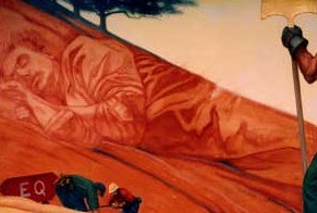 El último fresco da un sentido de “misión cumplida”, con la figura dominante de la obra, a la vez que transmite el mensaje de que “el trabajo nunca está totalmente hecho” como mano de obra siguen siendo difíciles en el trabajo en la clandestinidad. Esto es una reminiscencia de la película Metrópolis, donde una clase de trabajadores silenciosamente esclavos lejos del movimiento clandestino sostienen la utopía de la élite. Tampoco puedo dejar de recordar los 33 mineros chilenos , mientras miro a los trabajadores …