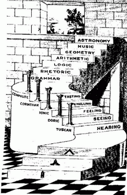 Un grabado masónico que representa las escaleras que conducen desde la planta masónica al “exterior”